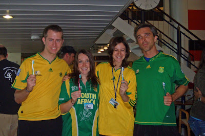 We've had quite a few sailing activities to keep us busy given our extended time at sea. This has included plenty of movie nights, sock golf, a carnival, and a "Sailing Olympics." The sponsor for the sailing olympics was HobNob biscuits, which is slightly ironic given that these cookies only come out during sail time to ward off sea sickness. I was on the olympic team "North and South," named appropriately as we are two North Americans and two South Africans. Please note that Matt is not smiling as he said he had his "game face" on. We are holding toothbrushes in this photo as we were instructed to bring them with us for the Olympic events. Here we are ready to start the games!